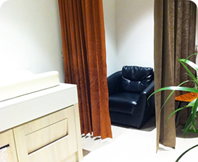 授乳室と併設したおむつ交換台もございます。お子様のお世話が必要な場合も安心してご利用いただけます。